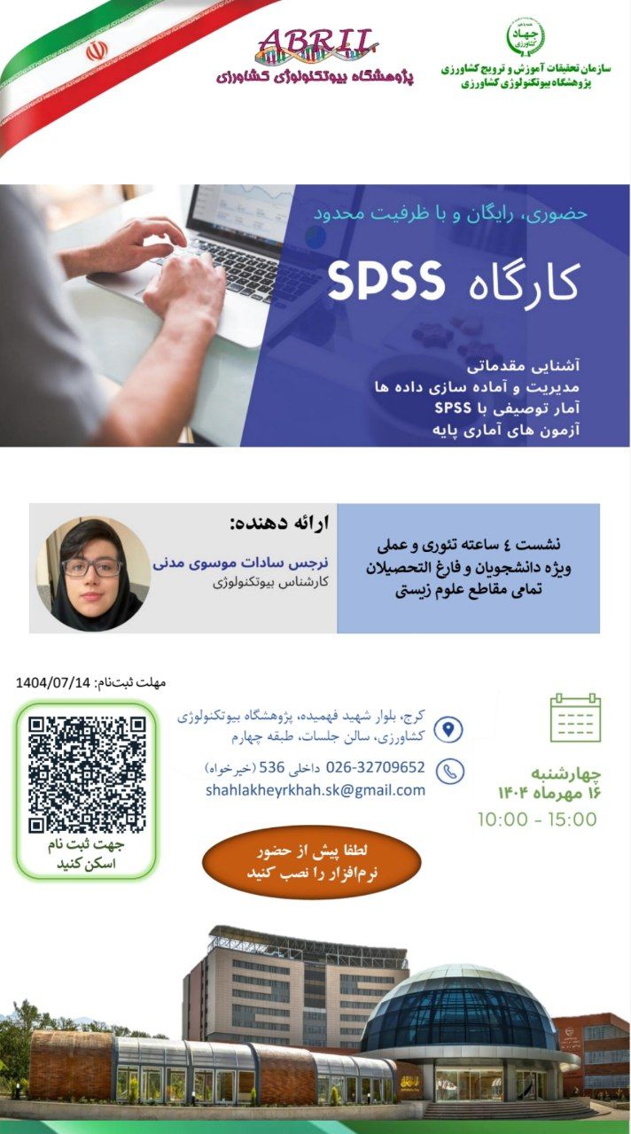مهرکارگاه SPSS بصورت تئوری و علمی ویژه دانشجویان و فارغ التحصیلان تمامی مقاطع علوم زیستی