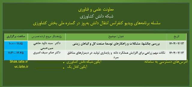 📌سلسله برنامههای ویدیو کنفرانس انتقال دانش بهروز در گستره ملی بخش کشاورزی: