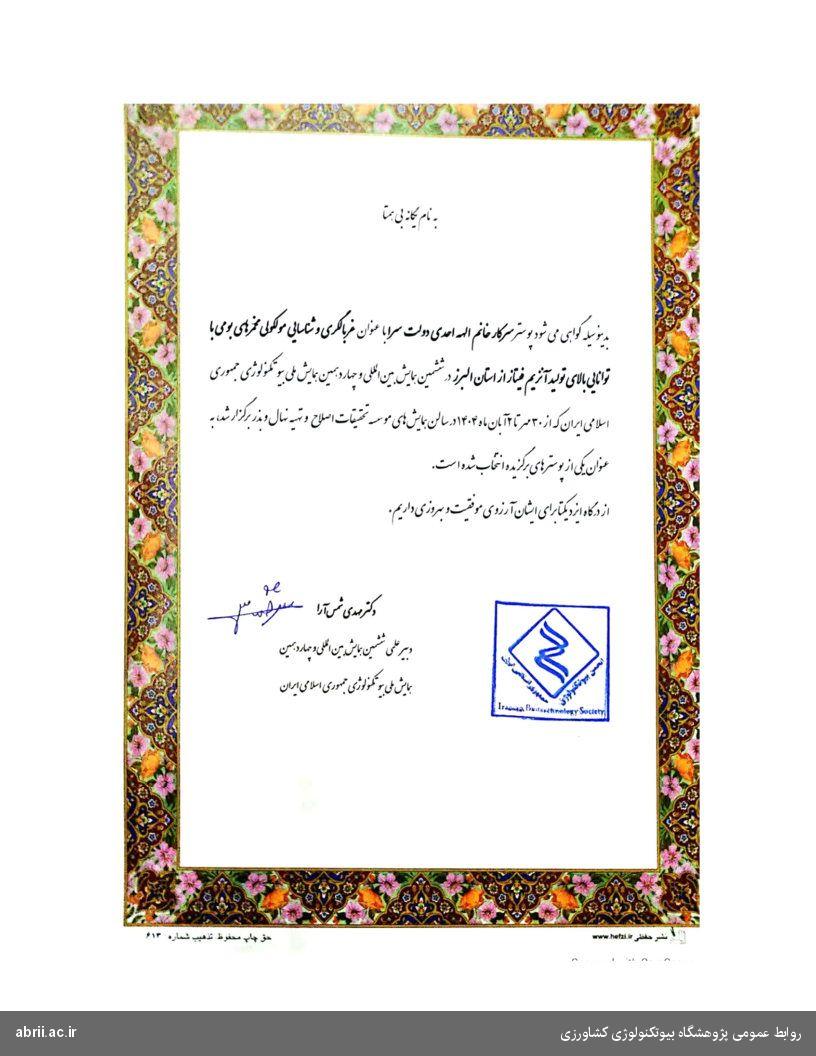 درخشش محققان پژوهشگاه در جمع برترینهای ششمین همایش بینالمللی بیوتکنولوژی