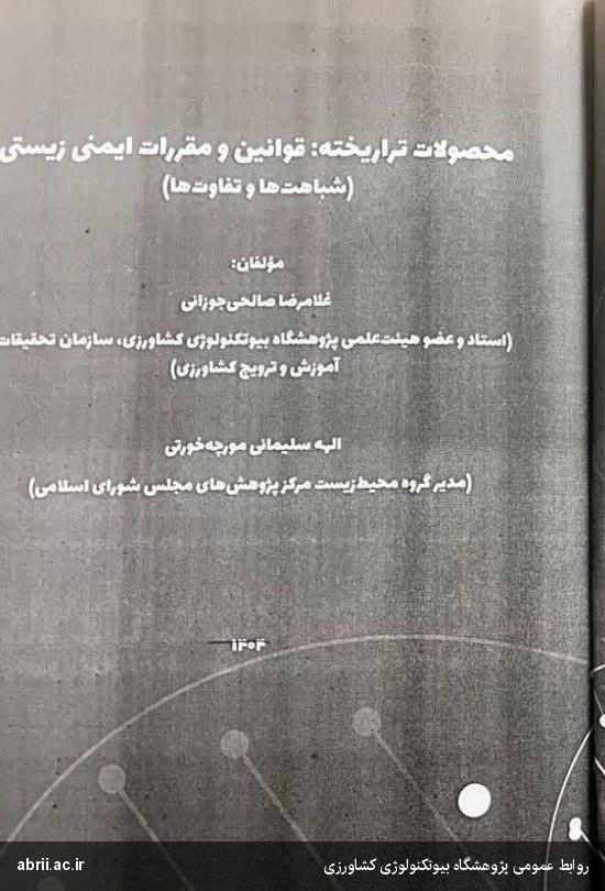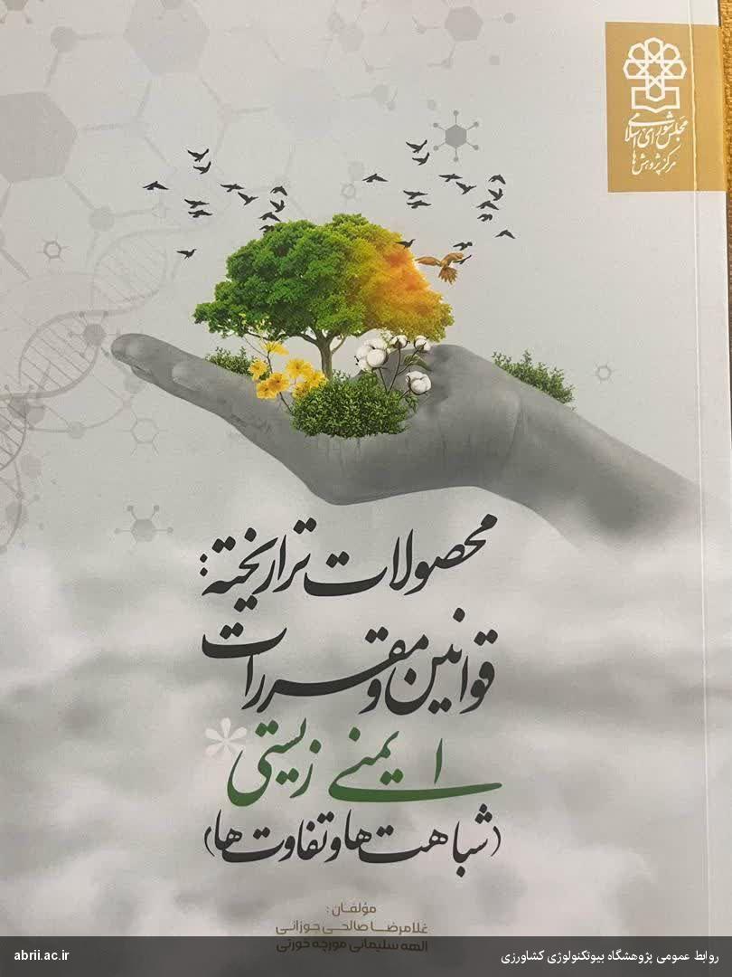 کتاب"محصولات تراریخته: قوانین و مقررات ایمنی زیستی (شباهت‌­ها و تفاوت‌ها)" به قلم دکتر غلامرضاصالحی جوزانی، استاد و عضو هیات علمی بخش بیوتکنولوژی میکروبی پژوهشگاه بیوتکنولوژی کشاورزی و مرجع ملی پروتکل ایمنی زیستی کارتاهنا، و خانم دکتر الهه سلیمانی  مدیر گروه محیط‌زیست و صنایع طبیعی دفتر مطالعات زیربنایی مرکز پژوهش­‌های مجلس شورای اسلامی به سفارش مرکز پژوهش‌های مجلس شورای اسلامی منتشر شده است. در این کتاب که نتیجه یک پروژه مطالعاتی 3 ساله در مرکز پژوهش‌­های مجلش شورای اسلامی می­باشد، به اهمیت و وضعیت جهانی و کشوری تولید و مصرف محصولات تراریخته، ضرورت تدوین و پیاده­ سازی مقررات ایمنی زیستی، معرفی قوانین و مقررات بین‌المللی ایمنی زیستی از قبیل پروتکل ایمنی زیستی کارتاهنا، کدکس غذایی، سازمان استاندارد جهانی و ..، سوابق ایمنی زیستی در ایران، معرفی و بحث در خصوص قانون ملي ايمني زيستي ایران و آیین‌­نامه‌های مرتبط، معرفی قوانین و مقررات ایمنی زیستی کشورهای منتخب از قاره آمریکا، آسیا، اروپا و اقیانوسیه شامل آرژانتین، آمریکا، برزیل، چین، استرالیا، ژاپن، کانادا، هند، اتحادیه اروپا و آلمان پرداخته است. در  انتخاب کشورهای مورد مطالعه، تلاش شد تا کشورهایی مطالعه شوند که اولاً توزیع جغرافیایی وسیع داشته و ثانیا دارای سیاست‌­های متفاوتی در زمینه محصولات تراریخته باشند. این کشورها دارای طیف متنوعی از تدابیر و سیاست­‌ها از بسیار احتیاط آمیز (مثل آلمان) تا بسیار ریسک پذیر نسبت به محصولات تراریخته (تولید کننده تراریخته‌­ها) وجود دارند. در نهایت معیارها و شاخص­های مهم ساختاری، حقوقی و مفهومی موجود در پروتکل ایمنی زیستی کارتاهنا و قوانین و مقررات ایمنی زیستی کشورهای مورد مطالعه شناسایی و موارد مذکور در قانون ملی ایمنی زیستی ایران مورد مقایسه قرار گرفته است. نهایتا بر اساس مطالعه تطبیقی صورت گرفته، شباهت­‌ها، خلاءها و نقاط قوت قانون و مقررات ایمنی زیستی ایران شناسایی و ساختار حقوقی جامع و شفاف ایمنی زیستی برای کشور پیشنهاد شده است.