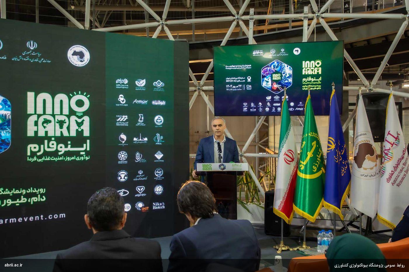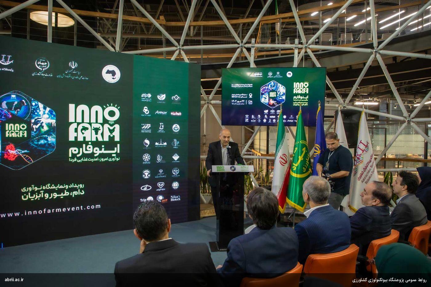 ابراهیمی، رئیس پژوهشگاه بیوتکنولوژی کشاورزی نیز طی سخنانی در افتتاحیه رویداد اینوفارم با اشاره به گردش مالی ۳.۵ تا ۵ میلیارد دلاری بخش دام، طیور و آبزیان، اینوفارم را عرصه ای برای همکاری بخش خصوصی و بخش تحقیقات برای تأمین نیازهای این حوزه عنوان کرد. وی خاطرنشان کرد: در رویداد اینوفارم تلاش داریم سرمایههای هوشمند را به سمت ایده های نوآورانه هدایت کنیم. پژوهشگاه بیوتکنولوژی کشاورزی نیز در راستای مسوولیت اجتماعی خود تمام ظرفیت و توان خود را در اختیار صنعت دام، طیور و آبزیان قرار میدهد.